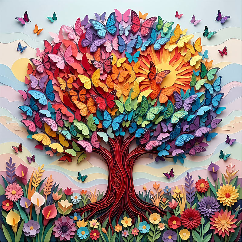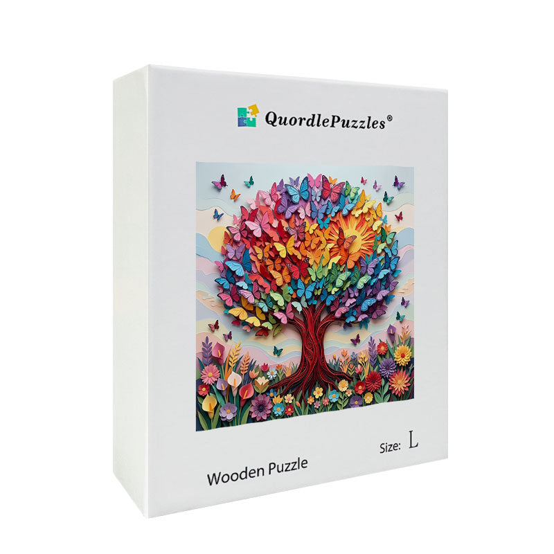 Regnbågsfjärilsträd i träpussel