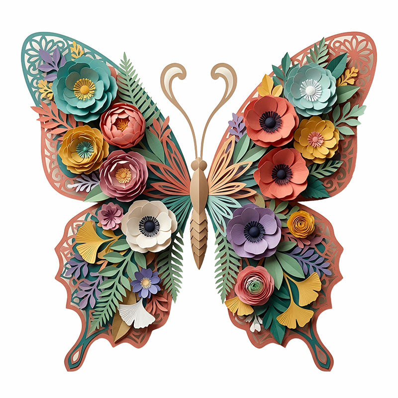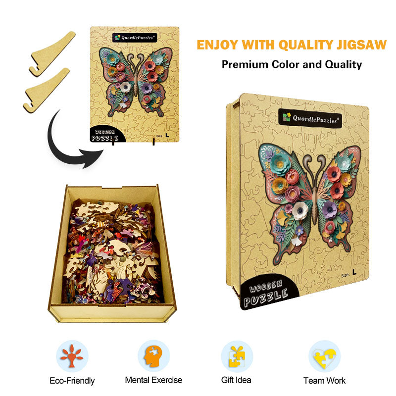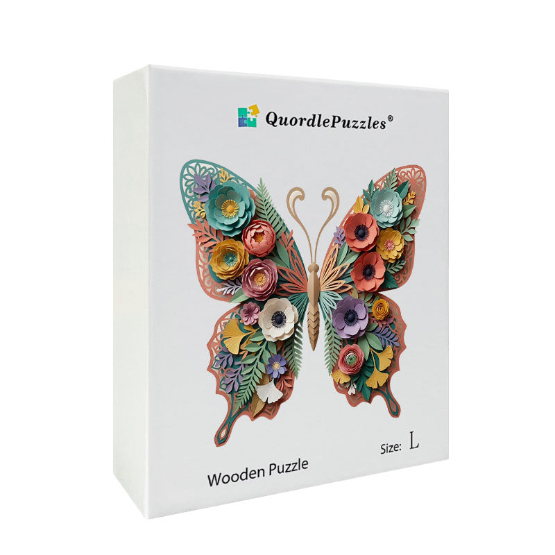 Träpussel med botaniska fjärilar och blommor